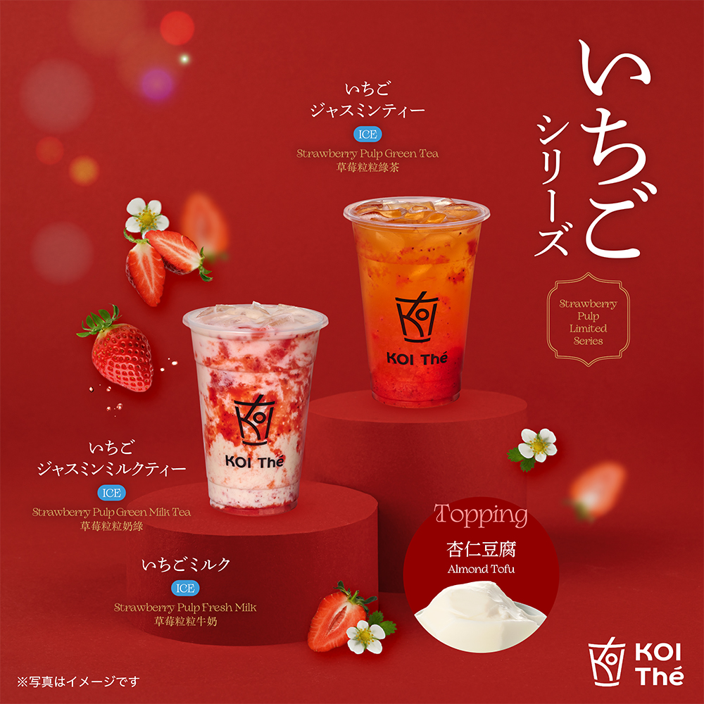 香り高いジャスミンミルクティーに、いちごピューレの甘酸っぱさをプラス。