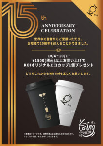 news 2022.06.13 \初夏限定・温州みかんティー・6月20(月)発売/ 2022.04.25 \飲めるシリーズ第二弾!/ 2022.03.21 \春限定・桜ラテ/ 2022.02.01 \バレンタイン&ホワイトデー/ 2022.01.01 \新春初売りセール/ 2021.12.03 \冬の新商品/ 2021.11.08 \ 通販商品が増えました / 2021.10.25 \HAPPY Halloween/ 2021.10.04 \KOI 15 Anniversary/ 2021.09.03 \ドリンクギフト券 9/3より販売スタート/ 2021.07.12 \夏季限定ドリンクが新登場!/ 2021.06.08 「青鳥旅行」のエッグロールを6月8日から販売開始! 投稿ナビゲーション 過去の投稿新しい投稿