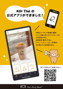 news 2021.05.12 \ 出前館 沖映通り店、イーアス沖縄豊崎店スタート!! / 2021.04.12 \ 全店舗営業時間のお知らせ / 2021.04.01 パッションフルーツシリーズ 新登場!! 2021.03.15 \ KOI Thé 公式アプリのお知らせ / 2021.03.11 \ 全店舗営業時間のお知らせ / 2021.02.09 \ 出前館 サンシャインシティアルパ店スタート!! / 2021.01.19 \新型コロナ感染拡大による時短営業のお知らせ / 2021.01.13 グラフィックデザイン/クリエイティブフィルムグランプリ 2020.12.01 NEW✨\\Biscuit Milk Tea ビスケットミルクティー// 2020.11.17 \ 出前館 広島、関東エリアスタート!! / 2020.10.16 10月より『ナタデココ』トッピングがスタート!! 2020.10.05 \ Uber Eats 広島エリアスタート / 投稿ナビゲーション 過去の投稿新しい投稿