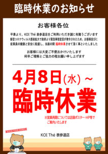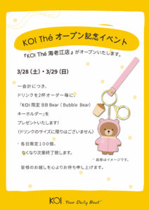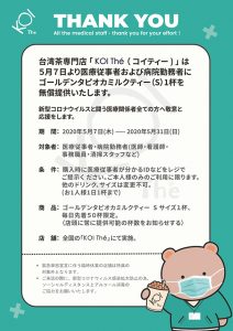 news 2020.10.16 10月より『ナタデココ』トッピングがスタート!! 2020.10.05 \ Uber Eats 広島エリアスタート / 2020.09.24 \Wolt(ウォルト) 広島エリアスタート/ 2020.09.11 KOI Thé 広島本通店 \\\ OPENING EVENT /// 2020.09.07 \Uber Eats 東京エリアスタート/ 2020.08.27 \Uber Eats 沖縄、関西エリアスタート/ 2020.07.28 \沖縄エリア モバイルオーダー&デリバリー はじめました/ 2020.06.09 \KOI Thé海老江店限定デリバリーサービス始めました / 2020.05.29 \ 全店舗open再開のお知らせ / 2020.04.30 5月7日より医療従事者および病院勤務者にゴールデンタピオカミルクティー(S)1杯を無償提供いたします。 2020.04.08 関東エリアのKOI Thé しばらくの間 臨時休業とさせていただきます。 2020.03.12 KOI Thé 海老江店オープン! 投稿ナビゲーション 過去の投稿新しい投稿